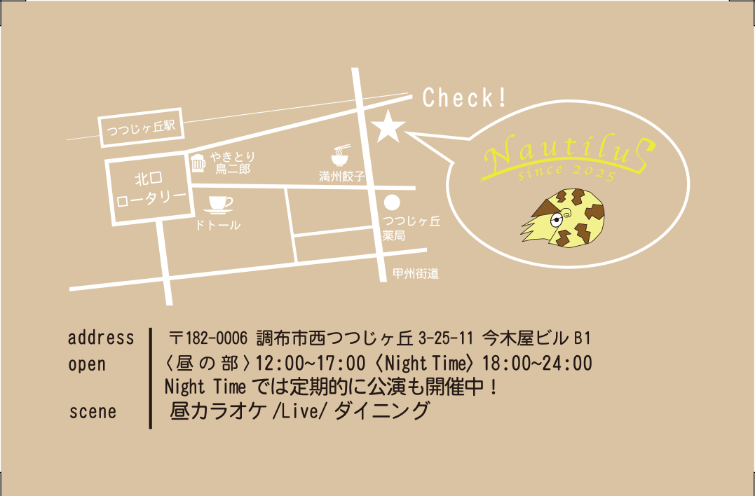 〒182-0006 調布市西つつじケ丘3-25-11 今木屋ビルB1